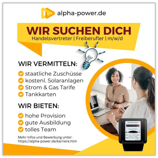 Wir bieten Ihnen die einmalige Chance, ein Top-Vergütungssystem zu nutzen und in kürzester Zeit 4-stellige Provisionen zu verdienen. Wir sind ein Vertrieb und Vermittler von staatlichen Fördermitteln des BAFA, kostenlosen Solaranlagenim Contracting und einer Tankkarte, mit der die Kunden bis zu 2 Cent pro Liter sparen können.